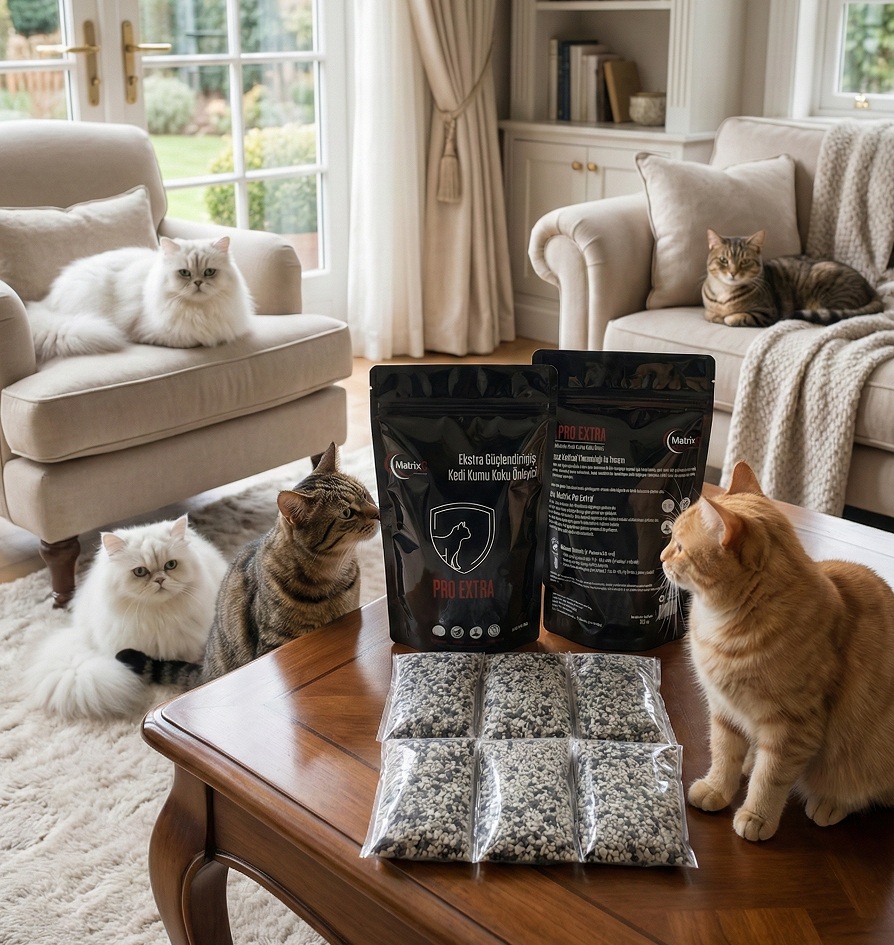 MatrixC Pro Extra, kedi için tuvalet kokusu bakım rutinini desteklemek üzere tasarlanmıştır. Veteriner teşhisi veya tedavisi yerine geçmez.